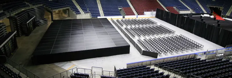 Barricade: StageRight CC-500. Total 88′ (in 4′ sections)