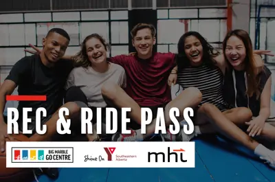 Rec & Ride Youth Passes include unlimited ridership on Medicine Hat Transit and unlimited access to the six facilities listed above.
